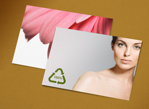 Cartes postales imprimés couleurs recto-verso (4/4 CMYK) sur carton recyclé 13 pts ENVIRO 100